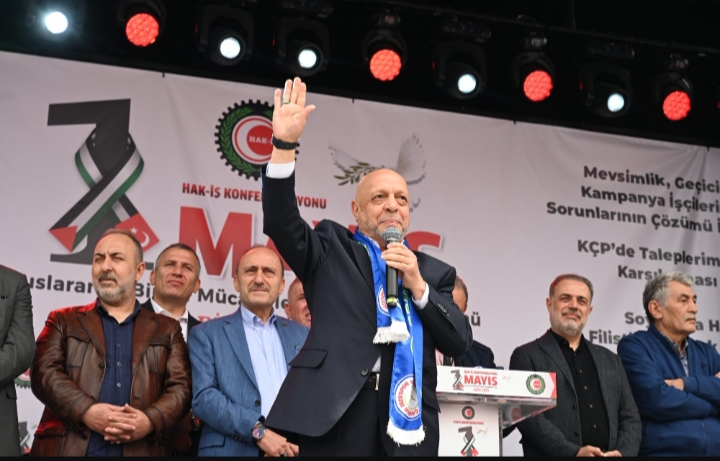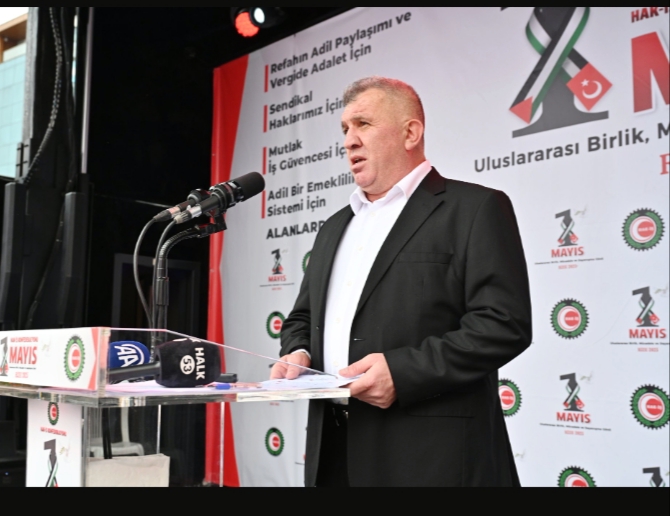 Konuşmasında 1 Mayıs’ın tarihsel köklerine değinen Arslan, bu günün, 1886’da Şikago’daki tekstil işçilerinin başlattığı hak arayışına dayandığını ve bugün hâlâ emek mücadelesinin simgesi olduğunu belirtti. HAK-İŞ’in bu günü ideolojik bir gösteri alanı değil, emekçilerin birlik ve dayanışma günü olarak gördüğünü vurguladı.