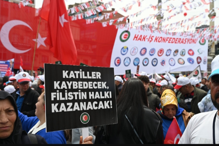 Program, konuşmaların ardından “HAK-İŞ 1 Mayıs Bildirisi”nin okunmasıyla sona erdi. Kaynak: Öz Gıda İş...