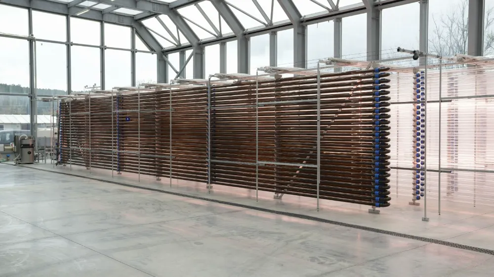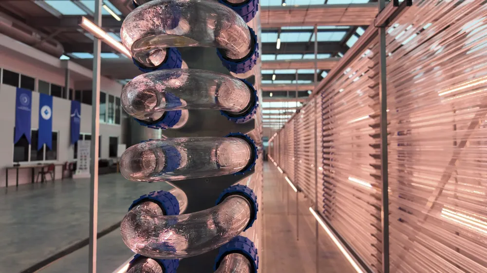 üretli ebilmesi için hibrit bir yetşi tri me sistemi uygulanıyor. Mikroalgler, doğal ışık ve yapay LED