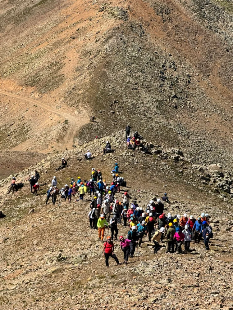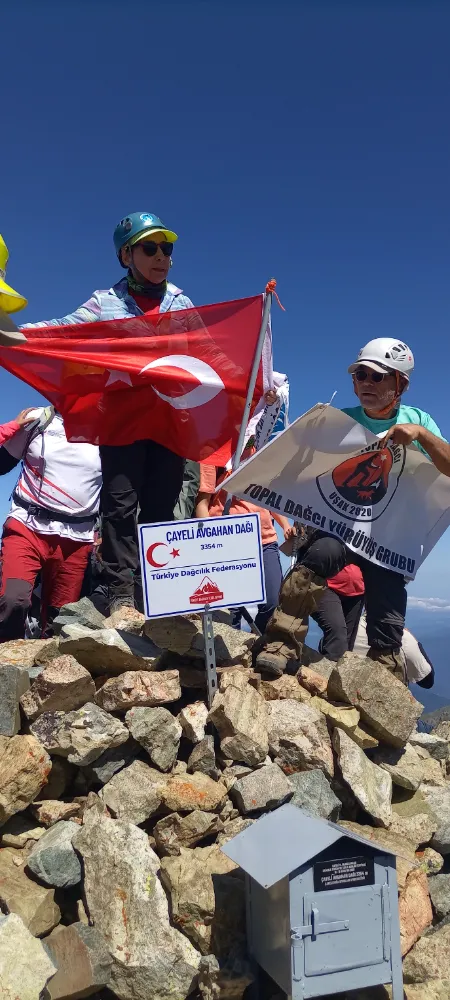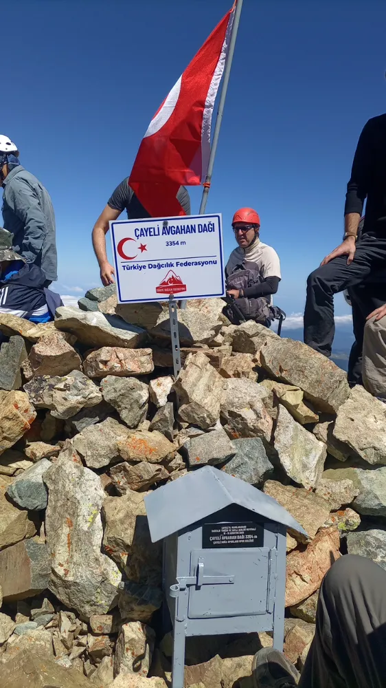 17 Ağustos sabahı Çayeli AVgahan dağı 3354 m . İlk kez gerçekleşecek tırmanışa başladık. Çayeli’nde daha önceden hazırladığımız metal zirve kutusu, zirve direği ve bayrağı, Türkiye dağcılık federasyonu tabelasını gönüllü arkadaşların taşıması ile zirveye ulaştırdık ve yerlerine koyduk.
