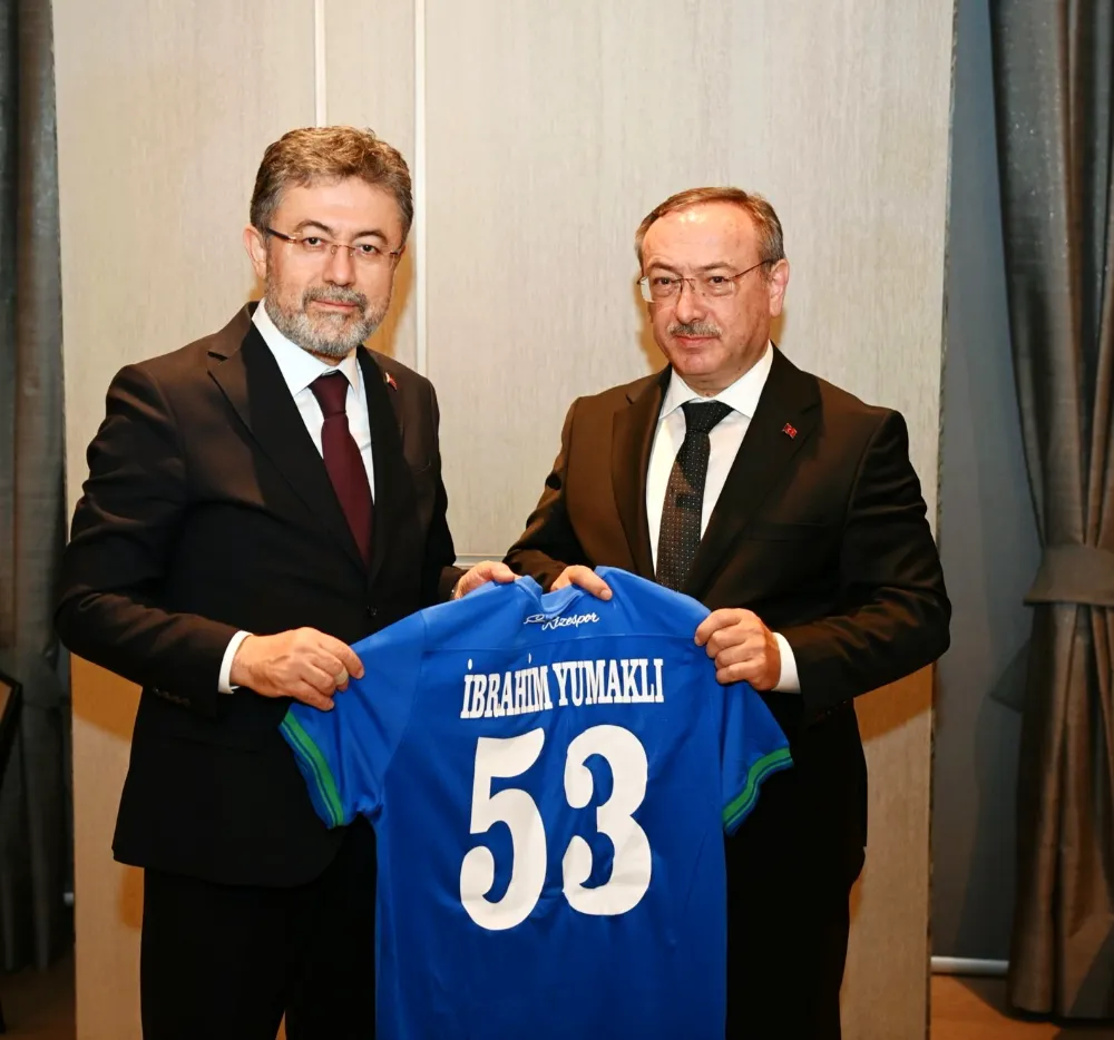 Cumhurbaşkanı Recep Tayyip Erdoğan, çeşitli programlara katılmak üzere geldiği ve 3 gün kaldığı memleketi Rize programına katılan, Tarım ve Orman Bakanı İbrahim Yumaklı'ya, Çaykur Genel Müdürü ve Ç. Rizespor Kulübü Başkan Yardımcısı Yusuf Ziya Alim tarafından Çaykur Rizespor forması hediye etti.