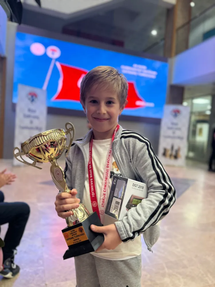 37 sporcunun katıldığı 8 yaş ve altı turnuvasında Rize’den Göktuğ Turan Mercan 1.oldu.