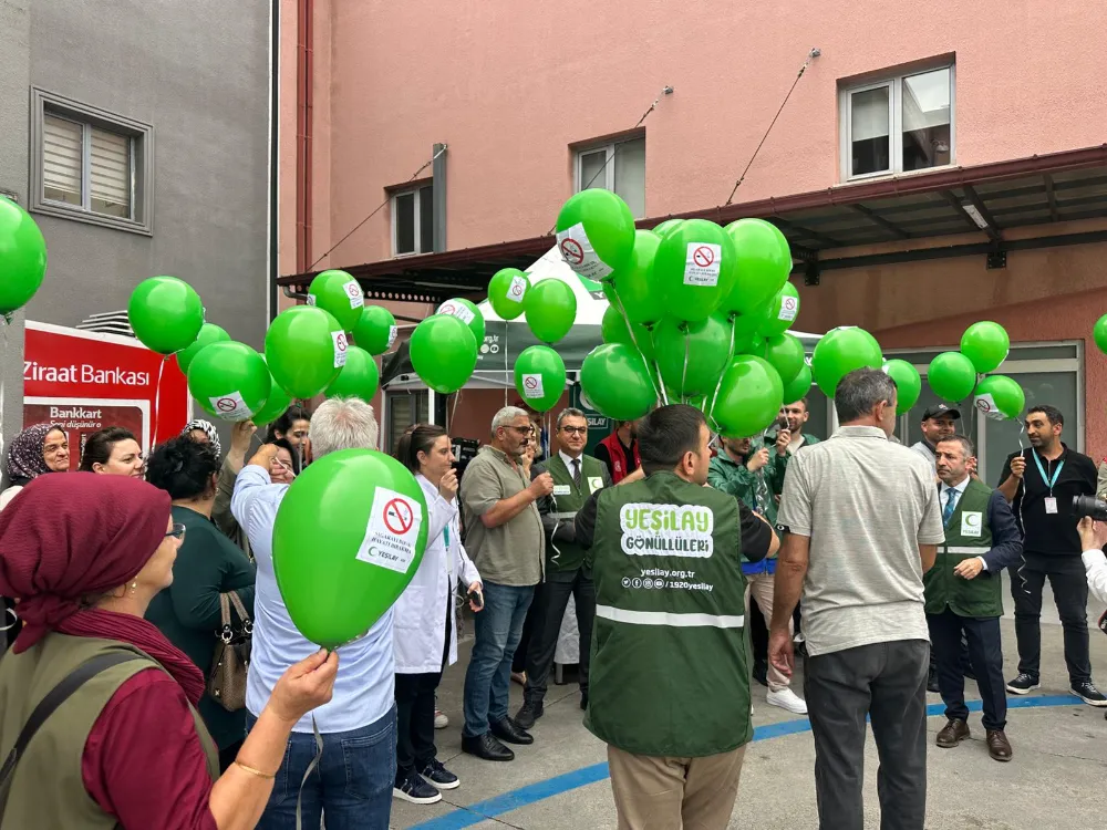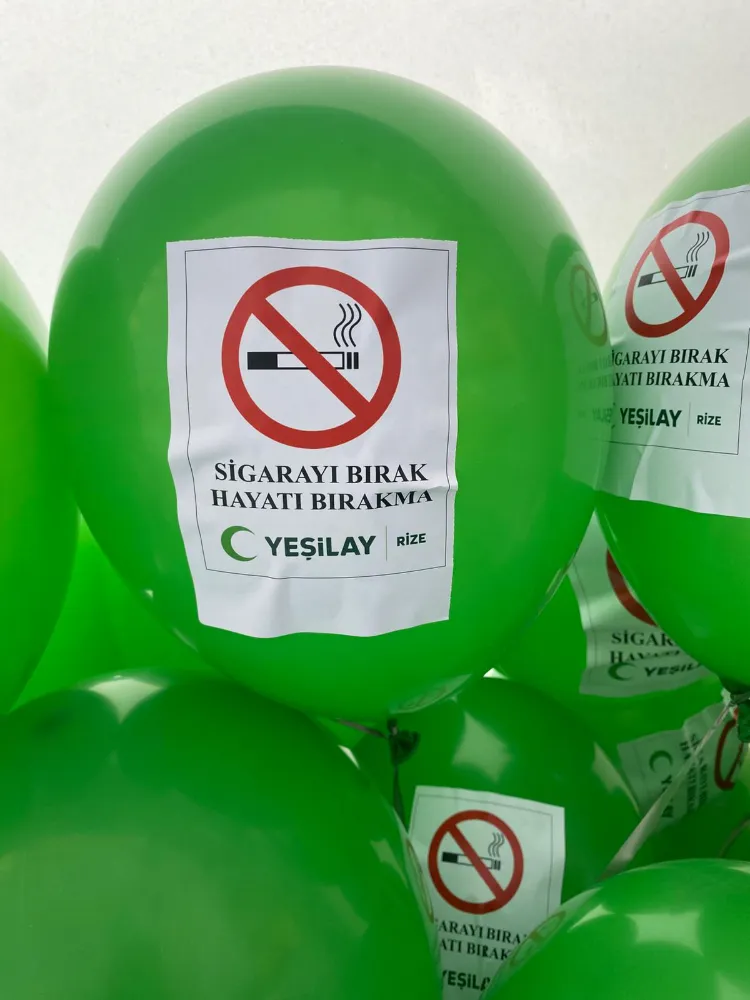 Rize Yeşilay Şubesi öncülüğünde, Rize Gençlik ve Spor İl Müdürlüğü ile Rize İl Sağlık Müdürlüğü’nün katkılarıyla düzenlenen etkinlikte, “Sigarayı Bırak, Hayatı Bırakma” mesajı helyum balonlarıyla gökyüzüne taşındı.