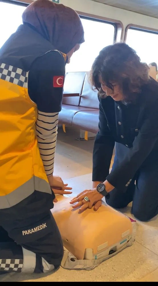 Acil Tıp ve Afet Çalışanları Derneği (ATAÇ-DER) Başkanı Dr. Temel Kılınçlı ise toplumun her bir ferdinin ilk yardımı öğrenmesini istediklerini ifade ederek ilk yardımı bilmeyenlerin de ilk yardımın önemini fark etmesi için bu eğitimi düzenlediklerini söyledi. Dr. Temel Kılınçlı, “Burada temel yaşam desteği yani doğru kalp masajı, doğru suni solunum, doğru kalp ve akciğer canlandırmasını maketler üzerinde, hocalarımız eşliğinde ve stajyer öğrencilerimizle birlikte yolcuların katılımıyla beraber gösteriyoruz." dedi.