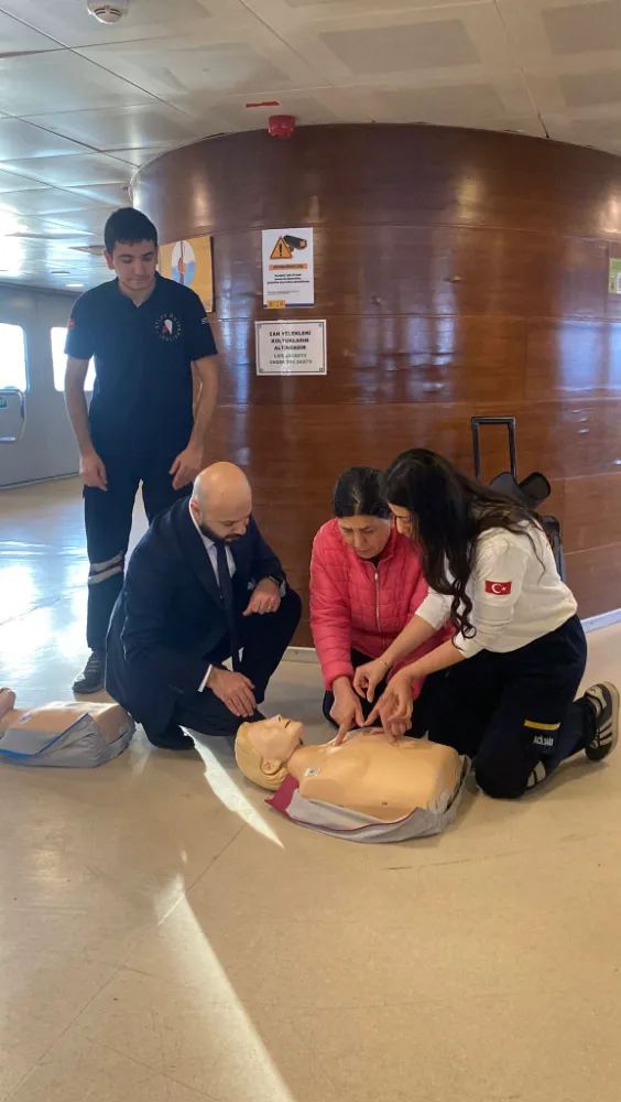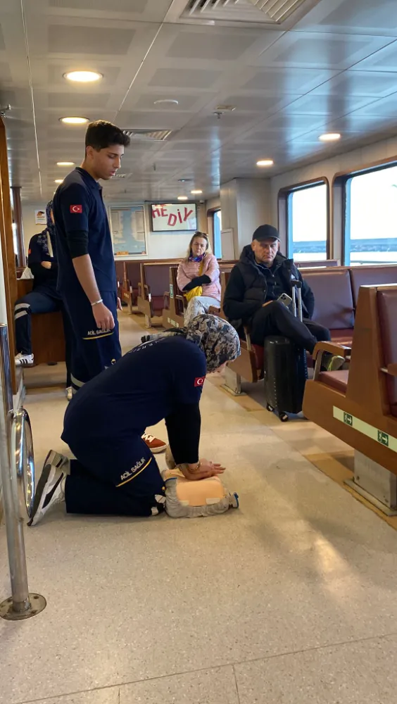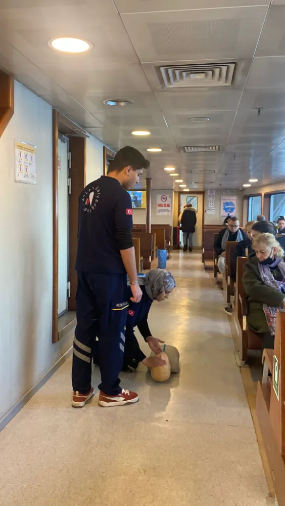 "Havada, Karada, Denizde İlk Yardım" eğitimleri kapsamında Beşiktaş Barbaros Hayrettin Paşa İskelesi'nden Kadıköy'e hareket eden vapurda düzenlenen programda, Atlas Üniversitesi İlk ve Acil Yardım Program Başkanı, Acil Tıp ve Afet Çalışanları Derneği (ATAÇ-DER) Başkan Yardımcısı, Öğretim Görevlisi Kadir Şeker, acil durumlarda yapılması gerekenlerle ilgili bilgi verdi.
