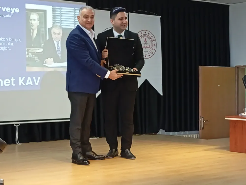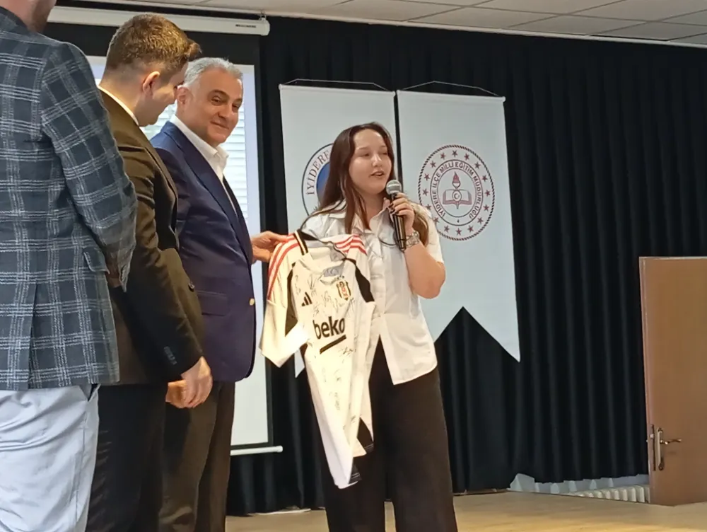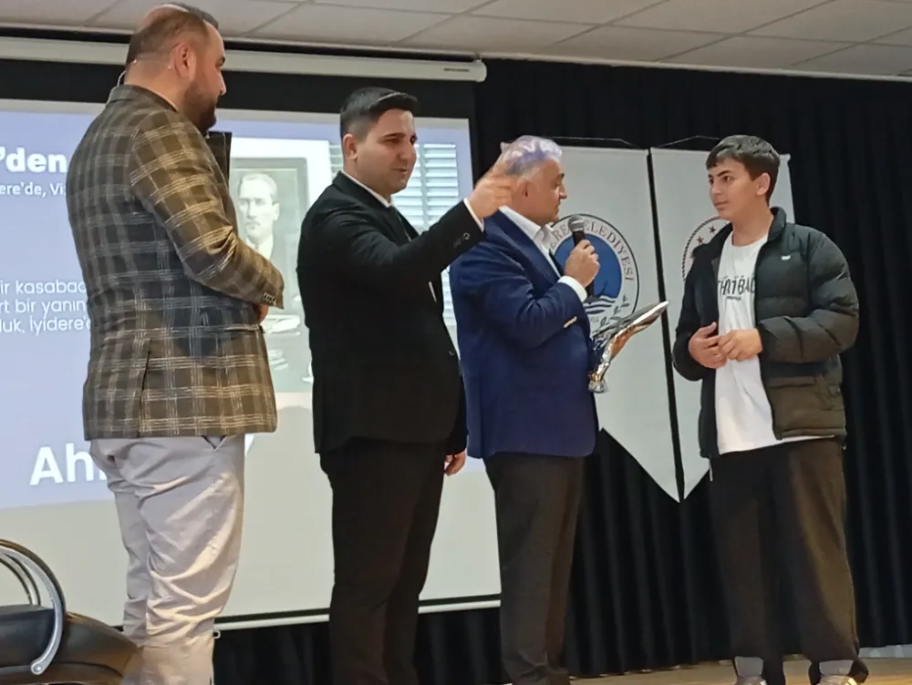 Programın Hazırlanması Aşamasında Vermiş Olduğu Emeklerden ve güzel sunumlarından dolayı programın Moderatörümüz İmam Hatip Ortaokulu Müdürümüz sn. Kazım Talay'a teşekkür ederiz." dedi. Programın sonunda, İyidereli iş ve spor insanı Ahmet Kavalcı'ya, İyidere Kaymakamı, İyidere Belediye Başkanı ve İlçe Milli Eğitim Müdürlüğü tarafından günün anısına plaket takdim edildi. İyidere'de dünyaya gelen Kavalcı bir kısım öğrenciler imzalı BJK forması hediye etti.