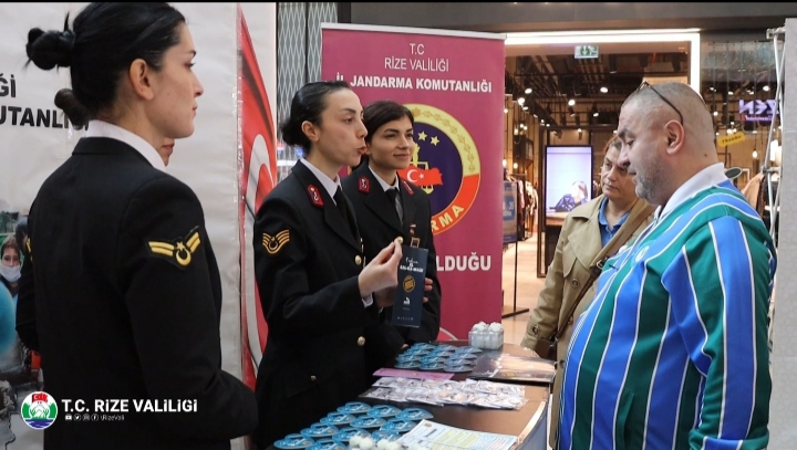 Rize İl Jandarma Komutanlığımız tarafından Şimal Alışveriş Merkezi’nde, kadın ve erkek vatandaşlarımıza yönelik KADES uygulaması tanıtımı ile “Kadına El Kalkamaz” mottosu çerçevesinde bilgilendirme ve bilinçlendirme faaliyeti gerçekleştirildi.