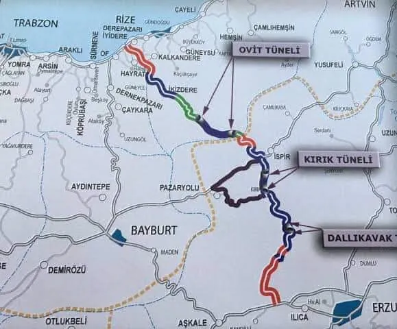 Rize-Erzurum karayolu üzerinde 14300 Metrelik Ovit Tünelinden sonra ikinci önemli tünel olan KIRIK Tünelinde ışık görmeye 875 metre kaldı. Günde 50 cm delme yapılırken çalışma alanında sık sık aşırı su çıkması, bozuk zeminin çalışmayı zorlaştırması sonucu 2015’den bu yana 7200 metrelik tünel delinememiş.