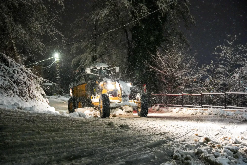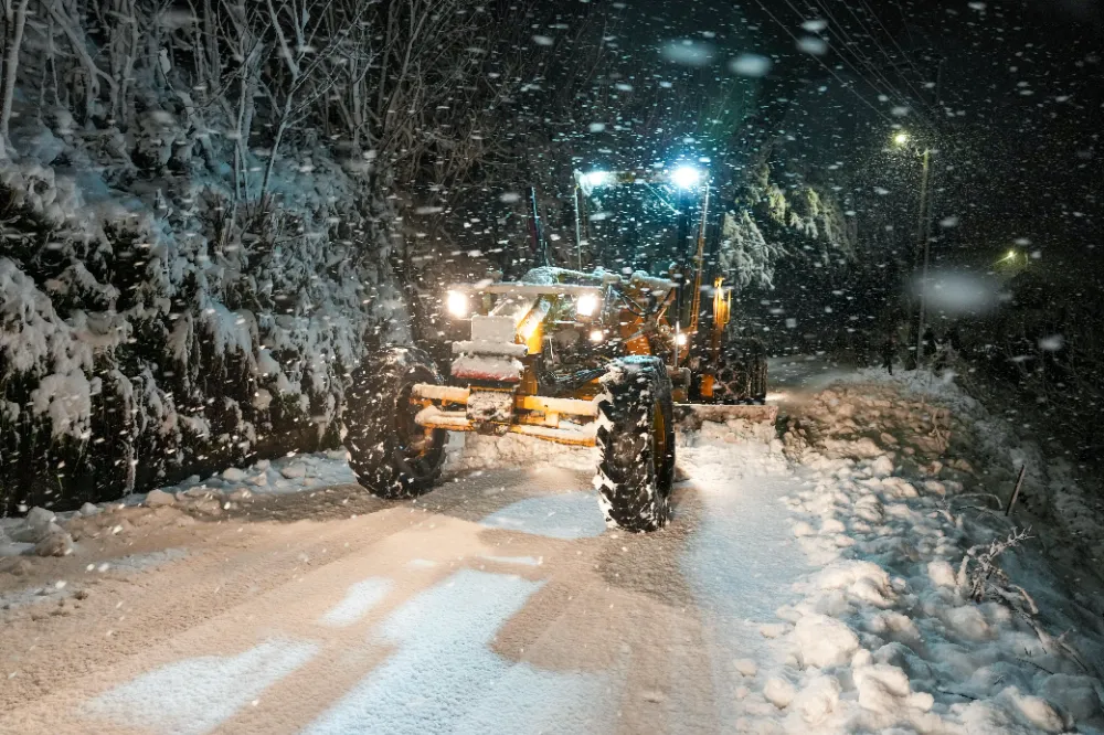 Yol açma ve kar temizleme ekipleri yollarda 24 saat esasına göre görev yapıyor. Kar küreme araçları ve tuzlama ekipleriyle yürütülen çalışmalar, olası buzlanma risklerine karşı titizlikle sürdürülüyor.
