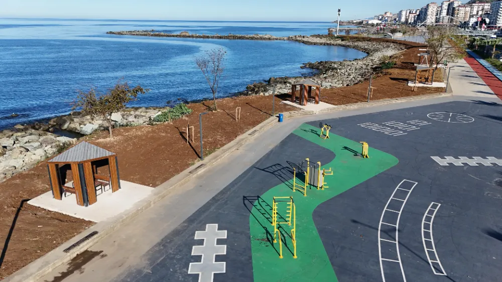 Sahil boyunca bisiklet ve yürüyüş yolu ile açık hava spor aletlerinin bulunduğu alan, vatandaşlara hem spor hem de dinlenme imkânı sunuyor.