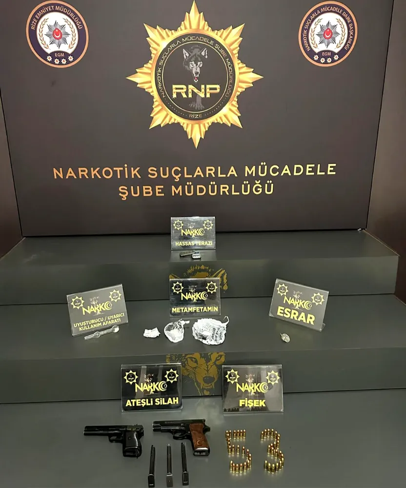 Rİze ili genelinde huzur ve güven ortamının arttırılması amacıyla yapılan çalışmalar doğrultusunda İl Emniyet Müdürlüğümüz Narkotik Suçlarla Mücadele Şube Müdürlüğünce tespit edilen şüphelilerin yakalanması ve uyuşturucu başta olmak üzere suç unsurlarının ele geçirilebilmesi amacıyla 21 ekip, 1 narkotik dedektör köpeği ve personeli olmak üzere toplamda 63 personelin katılımı ile 10.09.2025 günü eş zamanlı olarak 14 şüpheli şahsa yönelik operasyon yapılmıştır denildi.