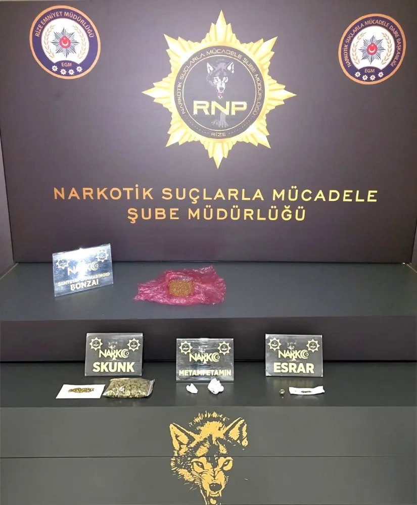 Rize Valiliği, Rize Emniyet Müdürlüğünden yapılan basın açıklamasına, Emniyet Müdürlüğümüze bağlı ekiplerce Rize ili genelinde uyuşturucu ve uyarıcı madde ticareti yapan ve ilimize uyuşturucu ve uyarıcı madde getireceği değerlendirilen şahıs ve gruplara yönelik yürütülen çalışmalarda tespit edilen şahısların yapılan ikamet, üst ve araç aramalarında; *81,09 gram sentetik cannobinoid (bonzai) maddesi, * 44,38 gram skunk maddesi, * 12,7 gram metamfetamin maddesi, * 1,32 gram esrar maddesi, * 2 adet uyuşturucu kullanım aparatı ele geçirilmiştir. Rize Emniyet Müdürlüğü toplam 8 şahıs hakkında gerekli adli işlemler yapılmıştır. Şahıslardan 1’i Müdürlüğümüzdeki işlemlerin ardından serbest bırakılırken, 2’si Adli Kontrol şartıyla serbest bırakılmış, 5’i çıkarıldıkları Adli Makamlarca tutuklanarak cezaevine teslim edilmiştir. İlimiz genelinde narkotik suçlarla mücadelemiz kararlılıkla devam etmektedir, şeklinde Kamuoyuna duyuruldu.