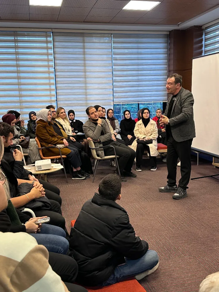 Recep Tayyip Erdoğan Üniversitesi Rektörü Prof. Dr. Yusuf Yılmaz’ın davetlisi olarak geldiği üniversitede öğrencilerle bir araya gelen Karakaş, yaşadığı çeşitli zorluklara rağmen elde ettiği başarıları ve uzay mühendisliği alanındaki deneyimlerini öğrencilerle paylaştı.