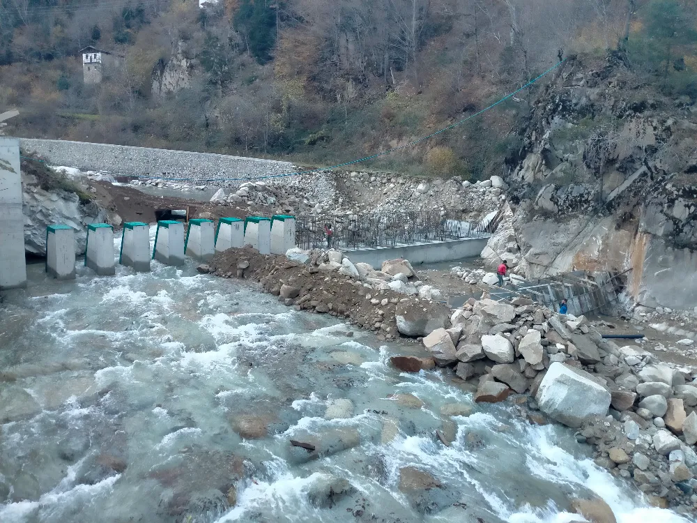 Şiddetli yağmurlar sonrası sık sık taşan İkizdere deresinin ilçe merkezinde ve karayolunda daha büyük hasar ve tahribatlar yapmaması için DSİ tarafından tahkimat ve Rusubat kontrol bendi yapılıyor.