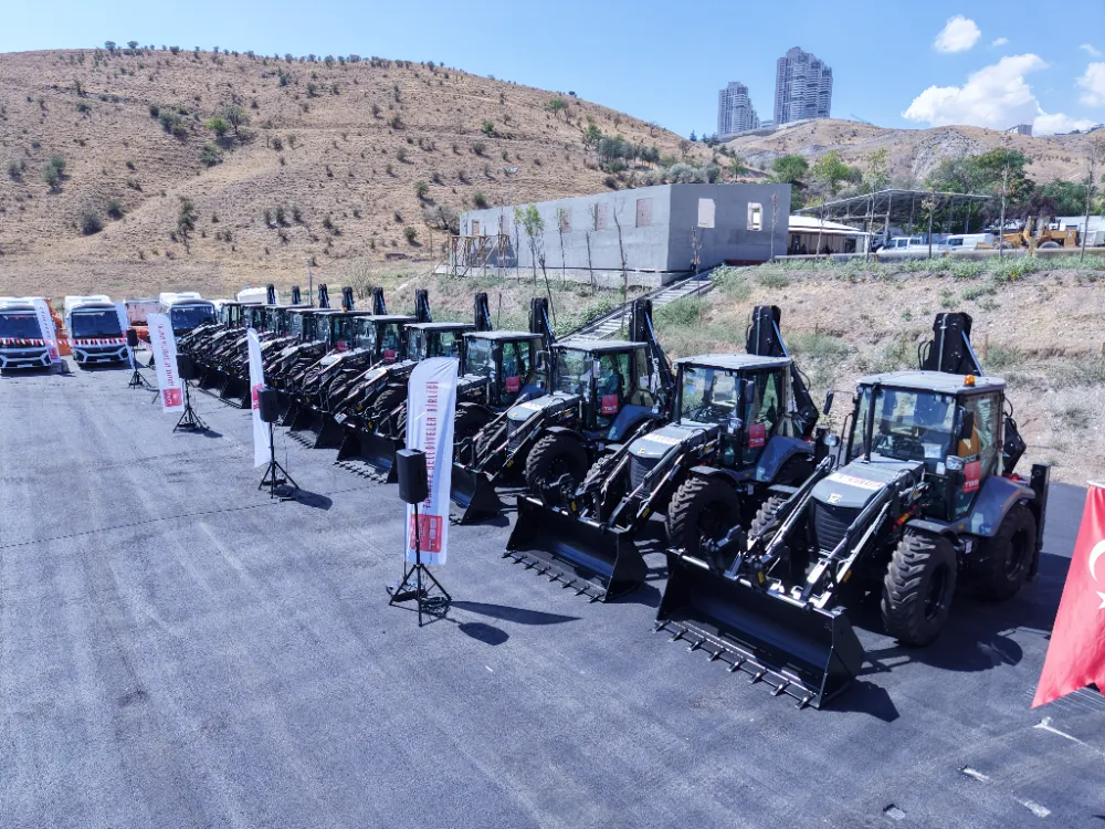 Hatıra fotoğrafının çekilmesiyle tamamlanan törenin ardından hibe edilen 2 çöp kamyonu, 7 damperli kamyon, 25 kazıcı yükleyici, 10 ekskavatör, 3 pikap, 6 otobüs ve 1 cenaze aracı Türkiye’nin dört bir yanına doğru yola çıktı.