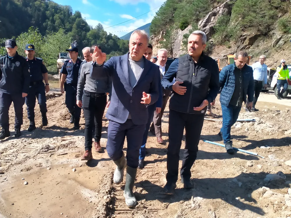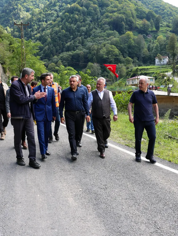 Vali Baydaş ile birlikte Rize Belediye Başkanı Rahmi Metin, AKP İl Başkanı Yılmaz Katmer Kaymakam İbrahim Halil Sürücü, İkizdere Belediye Başkanı Abdi Ekşi ve beraberindeki heyet zarar gören yerleri yerinde gördüler.