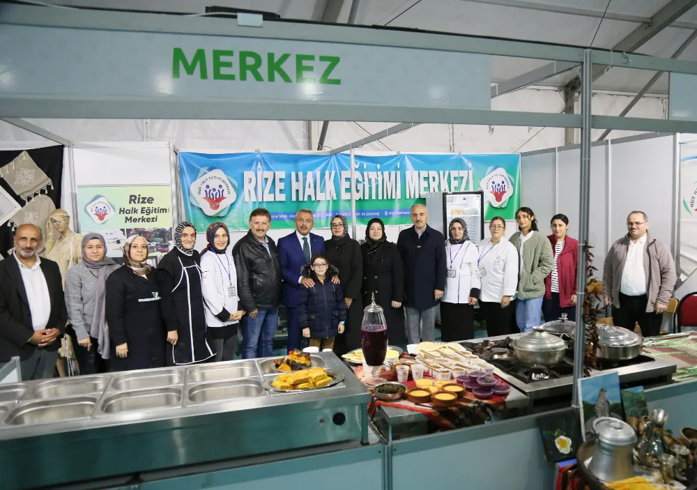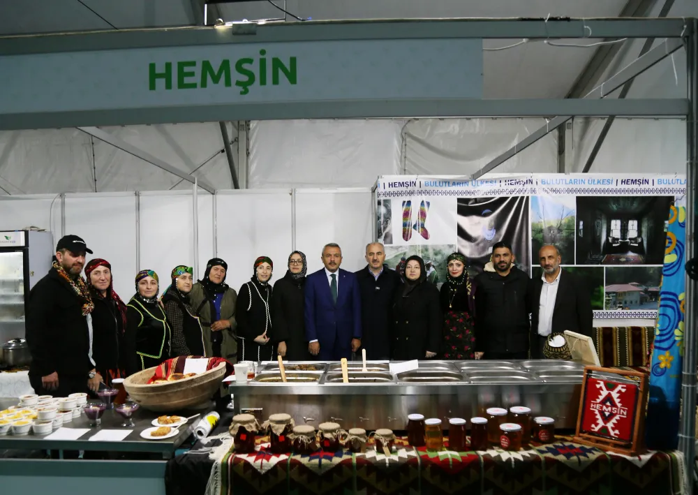 Protokol üyeleri, etkinlik alanında kurulan stantları gezerek yöresel lezzetleri inceledi, Rize’nin geleneksel mutfak kültürünü yaşatan yerel ustalar ve akademik şeflerle bir araya geldi.