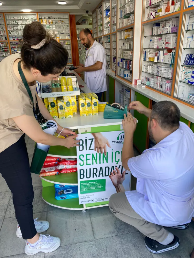 Bu anlamlı proje doğrultusunda, YEDAM personelleriyle birlikte çeşitli iş yerlerini ziyaret ederek Yeşilay'ın faaliyetleri hakkında bilgilendirmelerde bulunuluyor, afiş ve broşürleri esnaflarla paylaşılıyor.