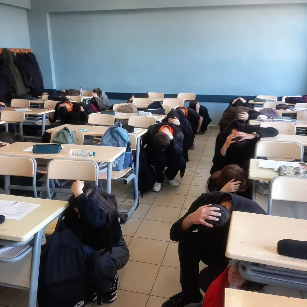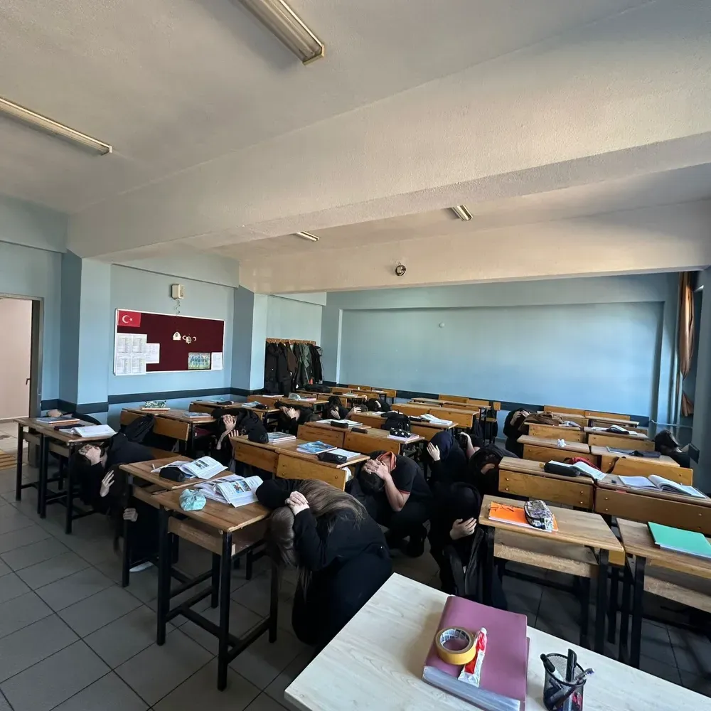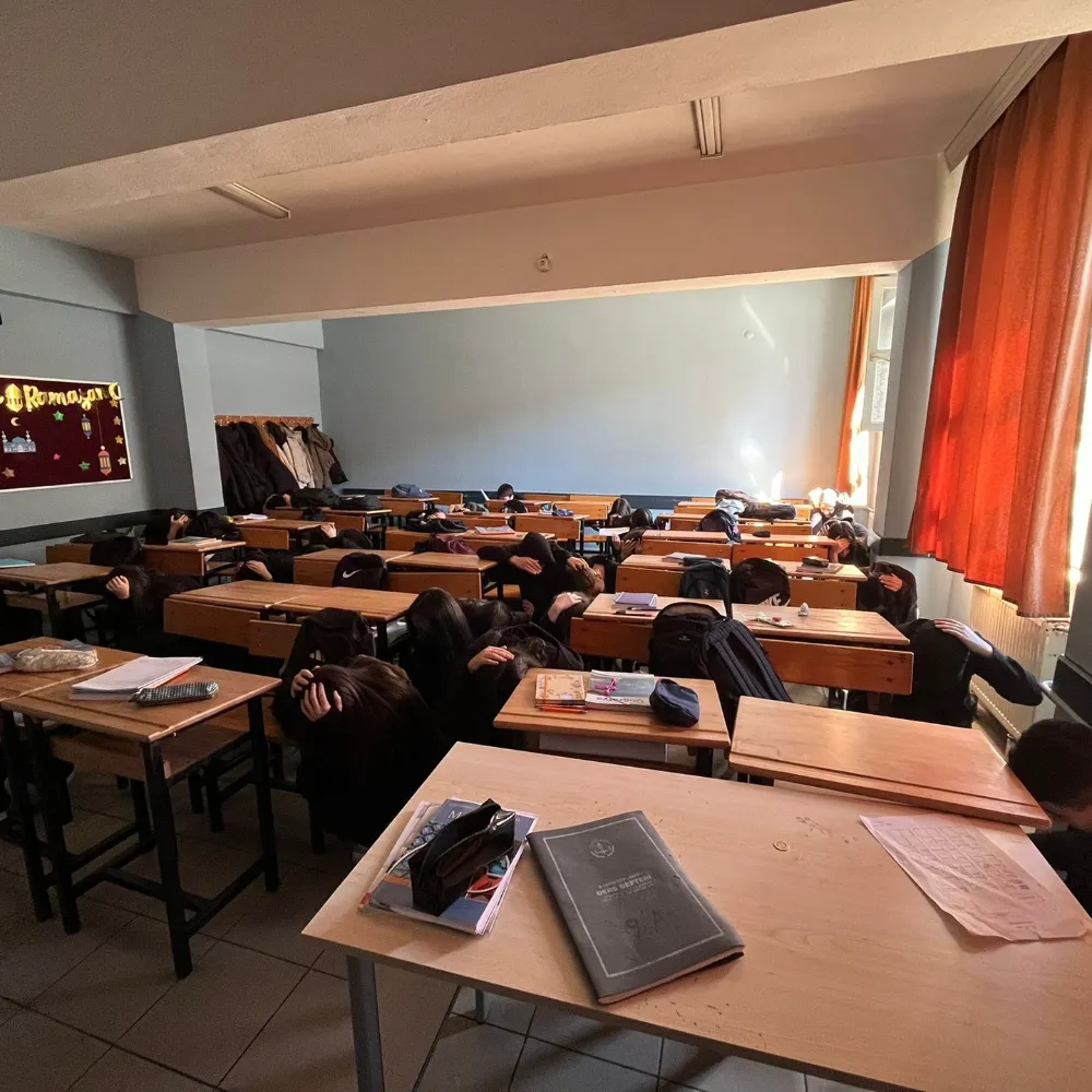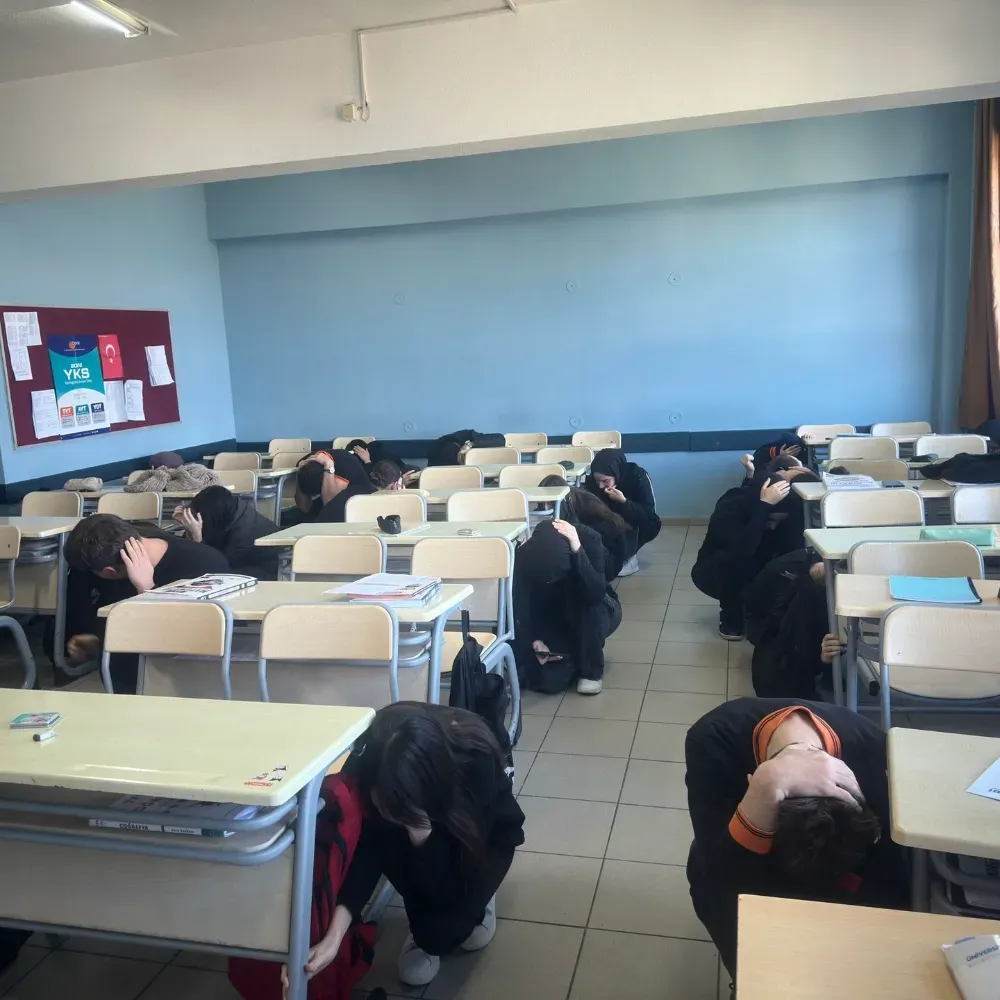 Tatbikat sırasında öğrenciler sınıflarında deprem anında yapılması gereken “Çök-Kapan-Tutun” hareketini uygulayarak sıralarının yanında güvenli pozisyon aldı. Ardından öğretmenlerin yönlendirmesiyle okul binası kontrollü bir şekilde boşaltıldı.