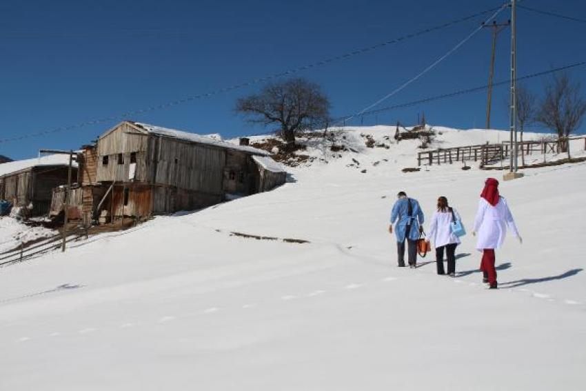 Hem­şi­re Asiye Bil­gi­li de köy­le­re çı­kıl­dı­ğın­da kar­şı­la­şı­lan zor­luk­lar do­la­yı­sıy­la aşı uy­gu­la­ma­la­rı­nın plan­lan­dı­ğı gibi git­me­di­ği­ni be­lir­te­rek, "Doğa şart­la­rı çok zor. Şu an yük­sek yer­le­şim yer­le­rin­de kar var. Karla kaplı pa­ti­ka yol­lar­dan ev­le­re ulaş­ma­mız ge­re­ki­yor. Ara­ba­dan in­dik­ten sonra ba­ya­ğı bir yol kat edi­yo­ruz.10 kişi aşı­la­mak için yola çık­tı­ğı­mız gün bazen 5 ki­şi­yi bile zor aşı­lı­yo­ruz. Yani her gün is­te­di­ği­miz aşı sa­yı­sı­na ula­şa­mı­yo­ruz. Ama yine de müm­kün ol­du­ğun­ca aşı­la­ma ça­lış­ma­mı­zı bi­tir­me­ye ça­lı­şı­yo­ruz. Her gün bir ön­ce­ki günün zor­lu­ğu­nu, mü­ca­de­le­si­ni unu­ta­rak aktif bir şe­kil­de sa­ha­da­yız" diye ko­nuş­tu. Hem­şi­re Meral Er­dü­zen ise, 'Coğ­raf­ya ge­re­ği yağ­mur­la gecen gün sa­yı­sı çok fazla, şimdi kış mev­si­mi var, ev­le­re ula­şan yol­lar karla kaplı. Biz o pa­ti­ka yol­la­rı yağ­mur­da da karda da yü­rü­ye­rek va­tan­daş­la­rı­mı­za ula­şı­yo­ruz, aşı­la­rı­nı ya­pı­yo­ruz. Fil­yas­yon ça­lış­ma­la­rın­da da aynı şey­le­ri ya­şı­yo­ruz ama biz hiç yıl­ma­dan bu mü­ca­de­le­ye devam ede­ce­ğiz, va­tan­daş­la­rın da des­te­ğiy­le ko­ro­na vi­rü­sün üs­te­sin­den ge­le­ce­ğiz" ifa­de­si­ni kul­lan­dı.
