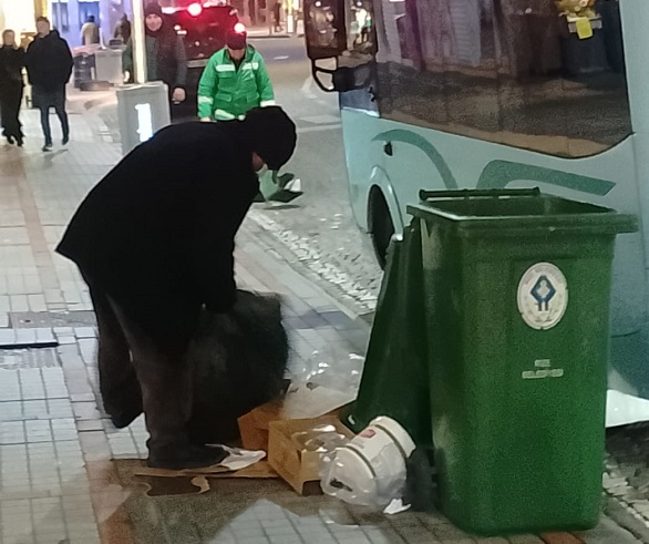 Rize merkezde yaşayan emekli bir vatandaşın çöp kutularını karıştırarak yiyecek ve satabileceği eşyalar araması, çevredeki vatandaşların dikkatini çekti.