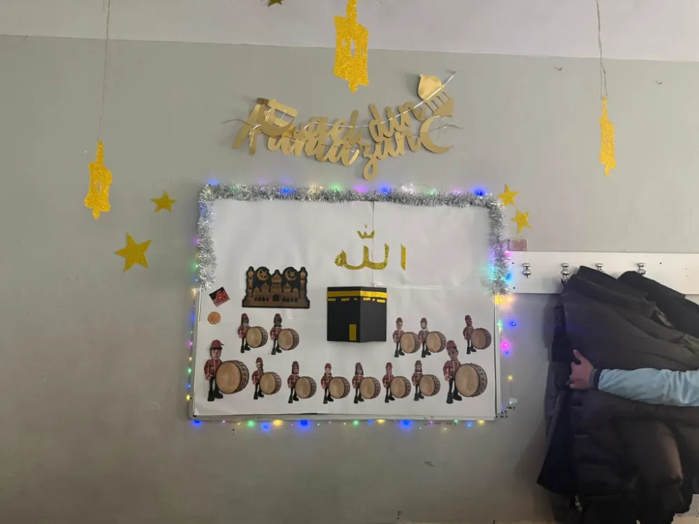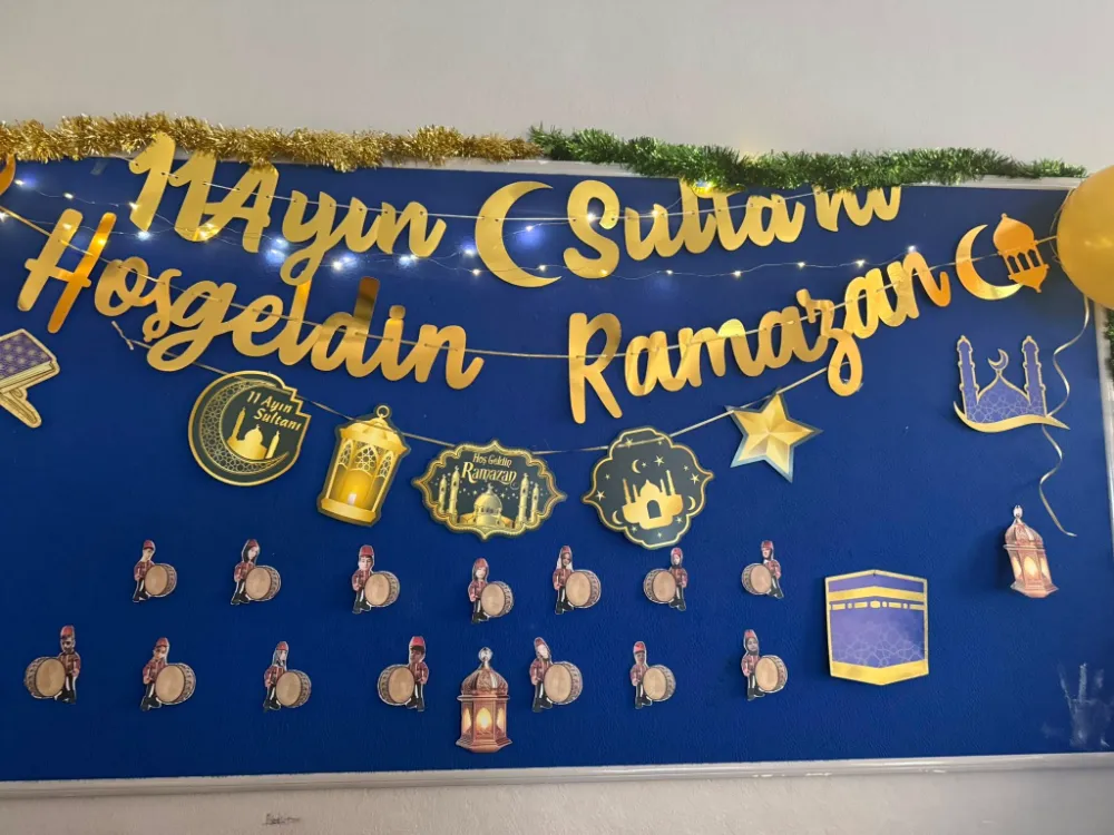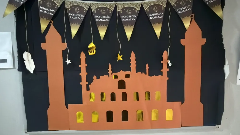 Ramazan ayının birlik, beraberlik, paylaşma ve dayanışma ruhunu yaşatmak amacıyla hazırlanan panolarda; Ramazan’ın önemi, orucun fazileti, yardımlaşma ve hoşgörü temaları ön plana çıkarıldı. Öğrenciler tarafından özenle hazırlanan süslemelerde ay-yıldız motifleri, mahya görselleri, Ramazan manileri ve anlamlı sözler yer aldı.