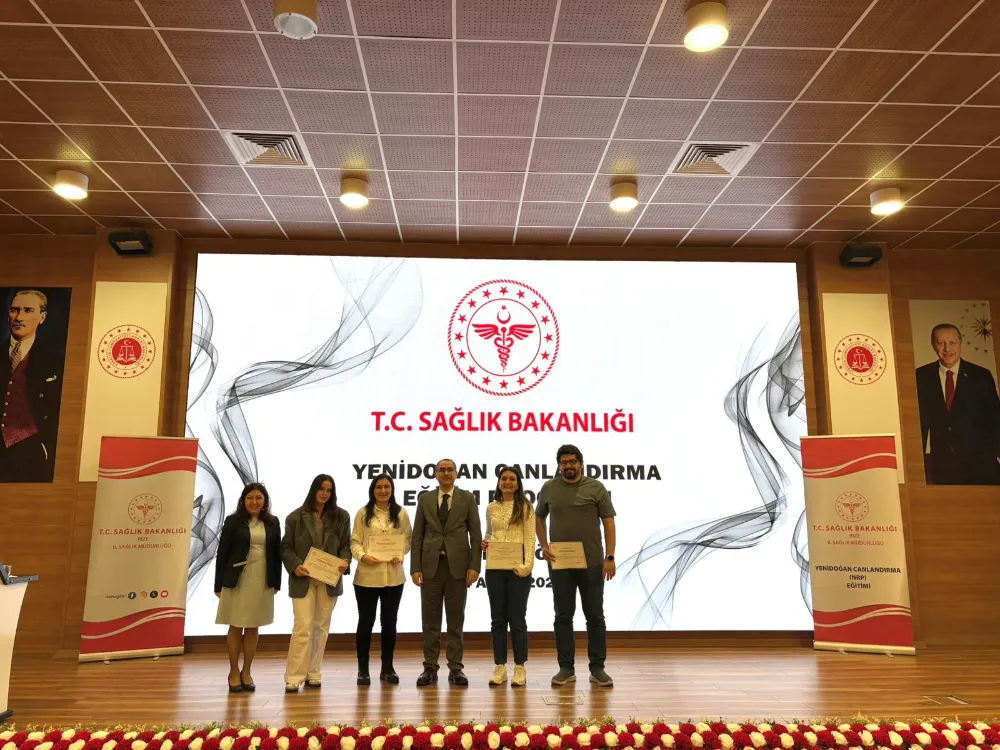 Kamu ve özel hastanelerde görev yapan uzman hekim, hekim, acil tıp teknisyeni, ebe ve hemşirelerden oluşan 49 sağlık çalışanı, doğum sonrasındaki kritik ilk dakikalarda uygulanacak müdahalelere yönelik hazırlanan eğitime katıldı. Program, yenidoğan bebeğe temas eden tüm sağlık personelinin bilgi ve becerilerini güçlendirmeyi amaçladı.