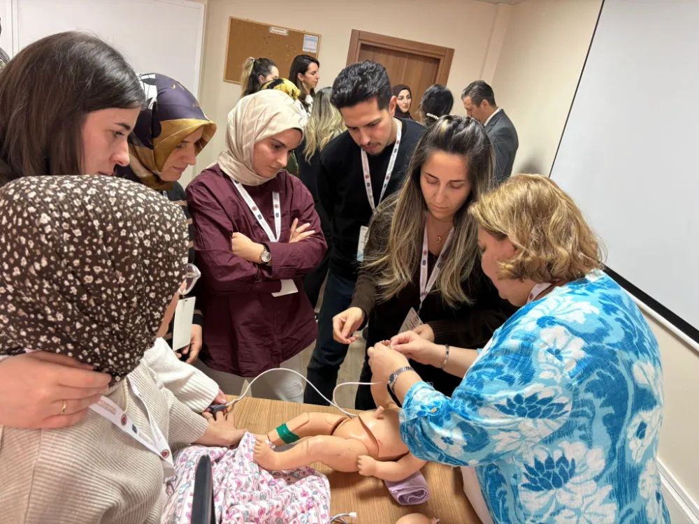 Kamu ve özel hastanelerde görev yapan uzman hekim, hekim, acil tıp teknisyeni, ebe ve hemşirelerden oluşan 49 sağlık çalışanı, doğum sonrasındaki kritik ilk dakikalarda uygulanacak müdahalelere yönelik hazırlanan eğitime katıldı. Program, yenidoğan bebeğe temas eden tüm sağlık personelinin bilgi ve becerilerini güçlendirmeyi amaçladı.