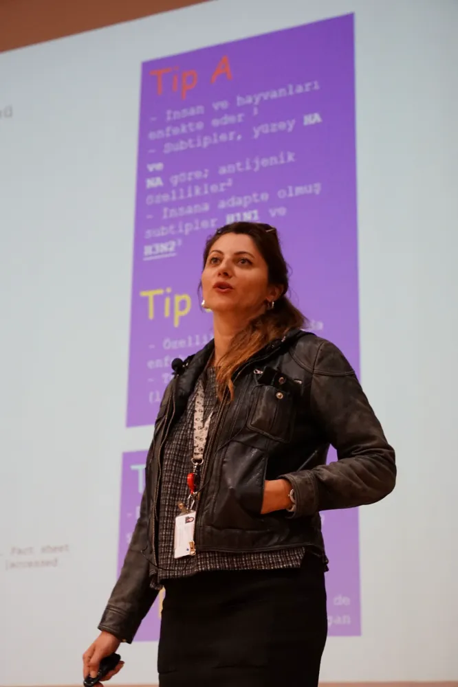 Gebelik döneminde aşılamanın önemine dikkat çeken Dr. Öğr. Üyesi Zeynep Eran, “Riskli grupta gebeler var. Gebelerde ciddi riskler oluşabilir. 1918- 1919, 1957-1958 ve 2009 -2010 yıllarında meydana gelen pandemilerde de gebe kayıpları gözlenmiş. Gebelerin influenza dönemlerinde hastaneye yatış oranları da diğer dönemlere göre iki kat daha fazla. En yüksek hastaneye yatış ilk üç ayda ve doğuma yakın zamandaki dönemde gerçekleşiyor. Kronik hastalığı olan gebelerde hastaneye yatış oranı sağlıklı gebelere oranla daha fazla. Peki bizim gebe bağışıklık hedeflerimiz ne? Hamilelik sırasında anne ve fetüsü korumamız lazım. Bu durumda annenin aşılanması öneriliyor. Doğumdan sonraki haftalarda anne sütüyle beraber 6 ay boyunca antikor bebeği koruyacaktır” diye konuştu.