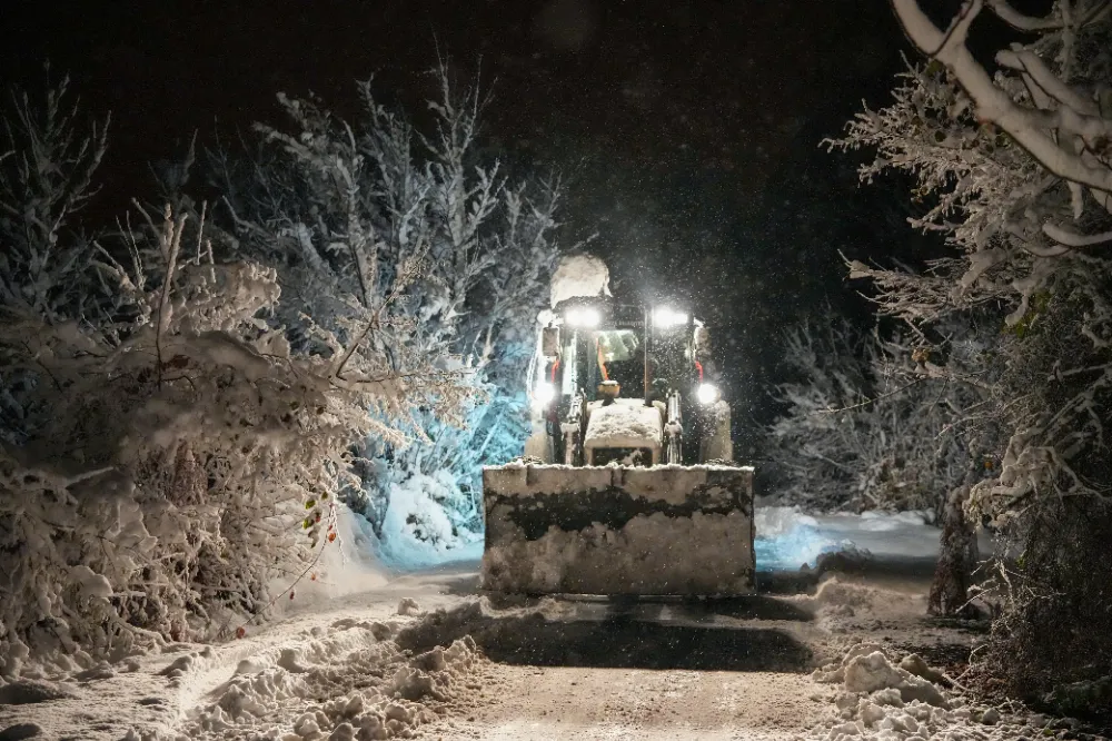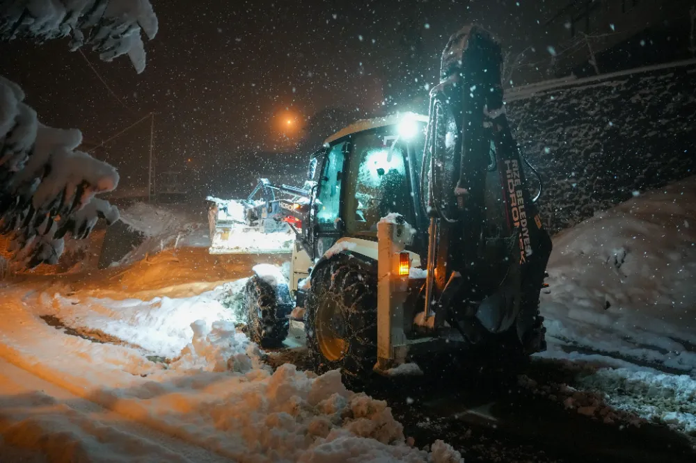 Yol açma ve kar temizleme ekipleri yollarda 24 saat esasına göre görev yapıyor. Kar küreme araçları ve tuzlama ekipleriyle yürütülen çalışmalar, olası buzlanma risklerine karşı titizlikle sürdürülüyor.