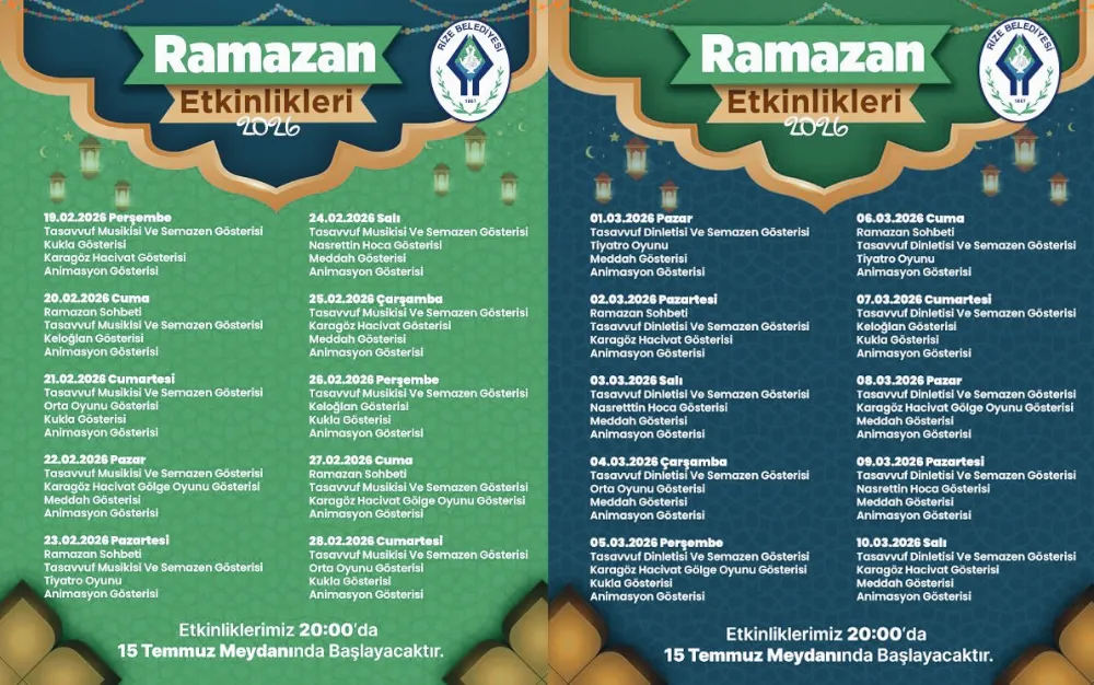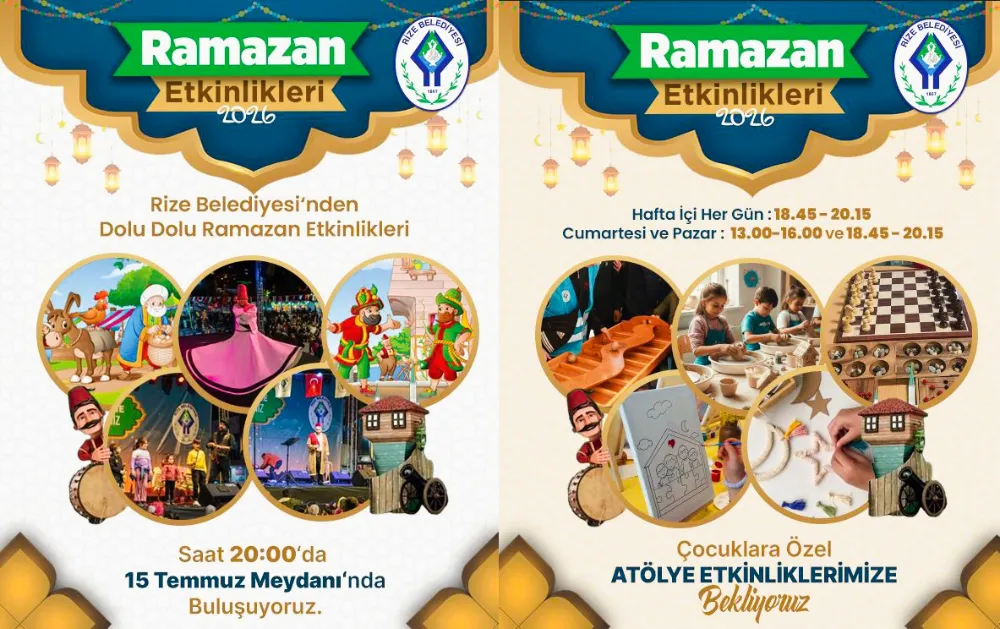Rize Belediyesi tarafından organize edilen "2026 Ramazan Etkinlikleri", 11 ayın sultanı Ramazan'ın ruhuna uygun olarak hem ailelere hem de çocuklara unutulmaz anlar yaşatmayı hedefliyor. 15 Temmuz Demokrasi ve Cumhuriyet Meydanı'nda özel olarak kurulan dev etkinlik çadırında, geleneksel Türk tiyatrosundan tasavvuf musikisine, eğitici çocuk atölyelerinden Ramazan sohbetlerine kadar geniş kapsamlı bir program Rizelileri bekliyor.