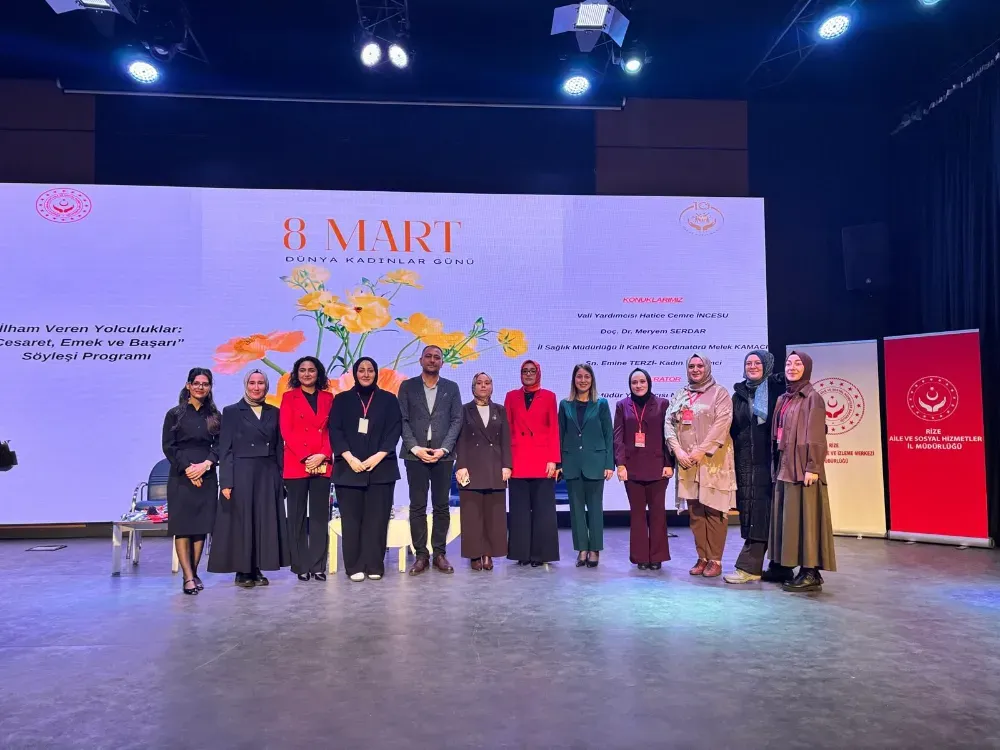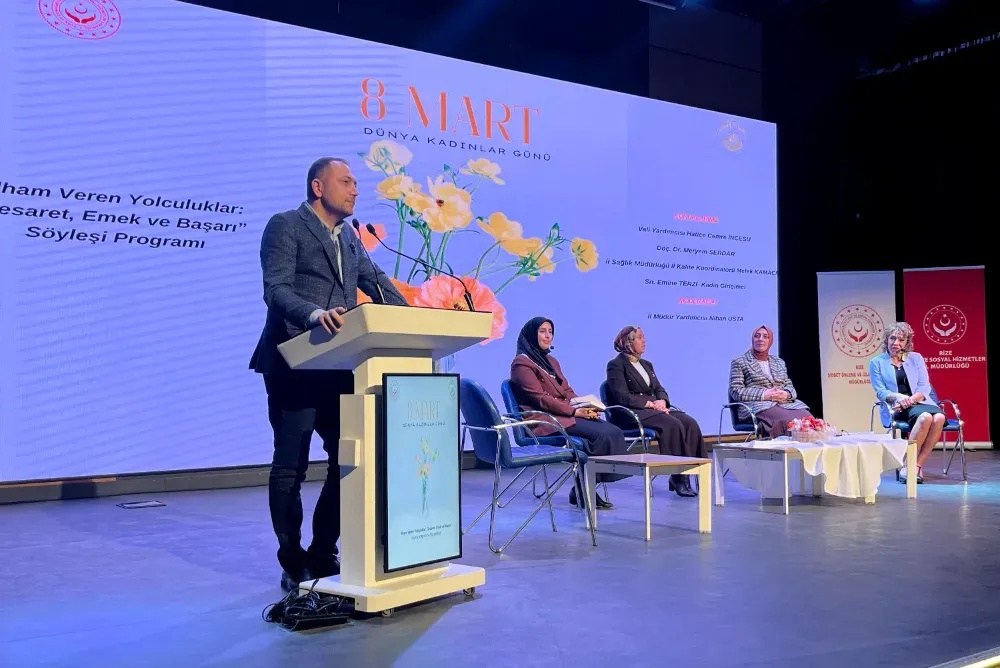 Rize’de 8 Mart Dünya Kadınlar Günü kapsamında, Aile ve Sosyal Hizmetler İl Müdürlüğü tarafından “İlham Veren Yolculuklar: Cesaret, Emek ve Başarı” temasıyla söyleşi programı düzenlendi.