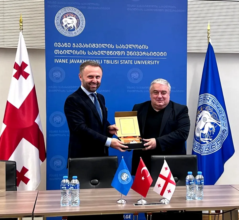 Daha sonra, Kutaisi Akaki Tserelli Üniversitesi ziyaret edilerek, Rektör Shalva Kirtadze, Yönetim Başkanı Sergo Svanadze ve Türkoloji bölümünden Giga Kamushazde ile gerçekleştirilen görüşmede, ikili iş birliği kapsamında yapılabilecek sosyal faaliyetler ve öğrenci değişimi ele alındı.