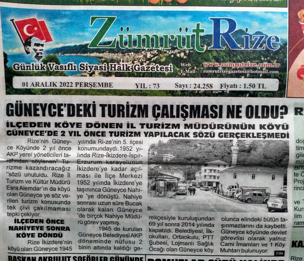 İlçeden köyde dönen Güneyce Köyünde 6 yıl kadar önce İl Özel İdaresi ve siyasetçiler tarafından Turizme kazandıracağız diye törenle halka tanıtımı yapılan projede bugüne kadar bir gelişme olmaması Güneyce yine unutuldu söylemini hatırlattı.Güneycede Turizm amaçlı hazırlanan projede Belediyeden Özel İdareye devredilen birçok taşınmazın yanında özel mülkiyetteki bina veya arazilerinde kamulaştırma çalışması planlanmıştı.6 yıldır bir çalışmanın görülmemesi projenin unutulduğu konusunda köy halkını endişeye sevk ediyor.