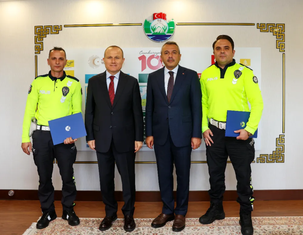 Olay anına tanıklık eden, Rize Valisi Baydaş, gösterdikleri görev bilinci ve özverili çalışmalarından dolayı Bölge Trafik Denetleme Şube Müdürü Başkomiser Akif Karaduman ile Polis Memuru Fatih Öztürk'ü beraberinde İl Emniyet Müdürü Murat Türesin ile bilikte makamında kabul ederek başarı belgesi takdim etti.